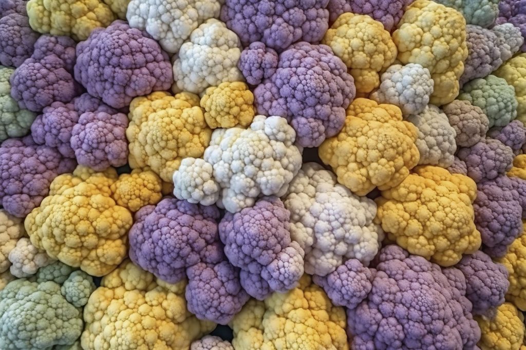 Did you know cauliflower comes in different colours, like white, purple, and even orange? Each one not only looks cool but also has its own nutritional perks, thanks to different phytonutrients. Plus, cauliflower is part of the Brassica oleracea family, which includes other veggies like broccoli, cabbage, and kale. These veggies are known for their cancer-fighting properties and all-around health benefits.
